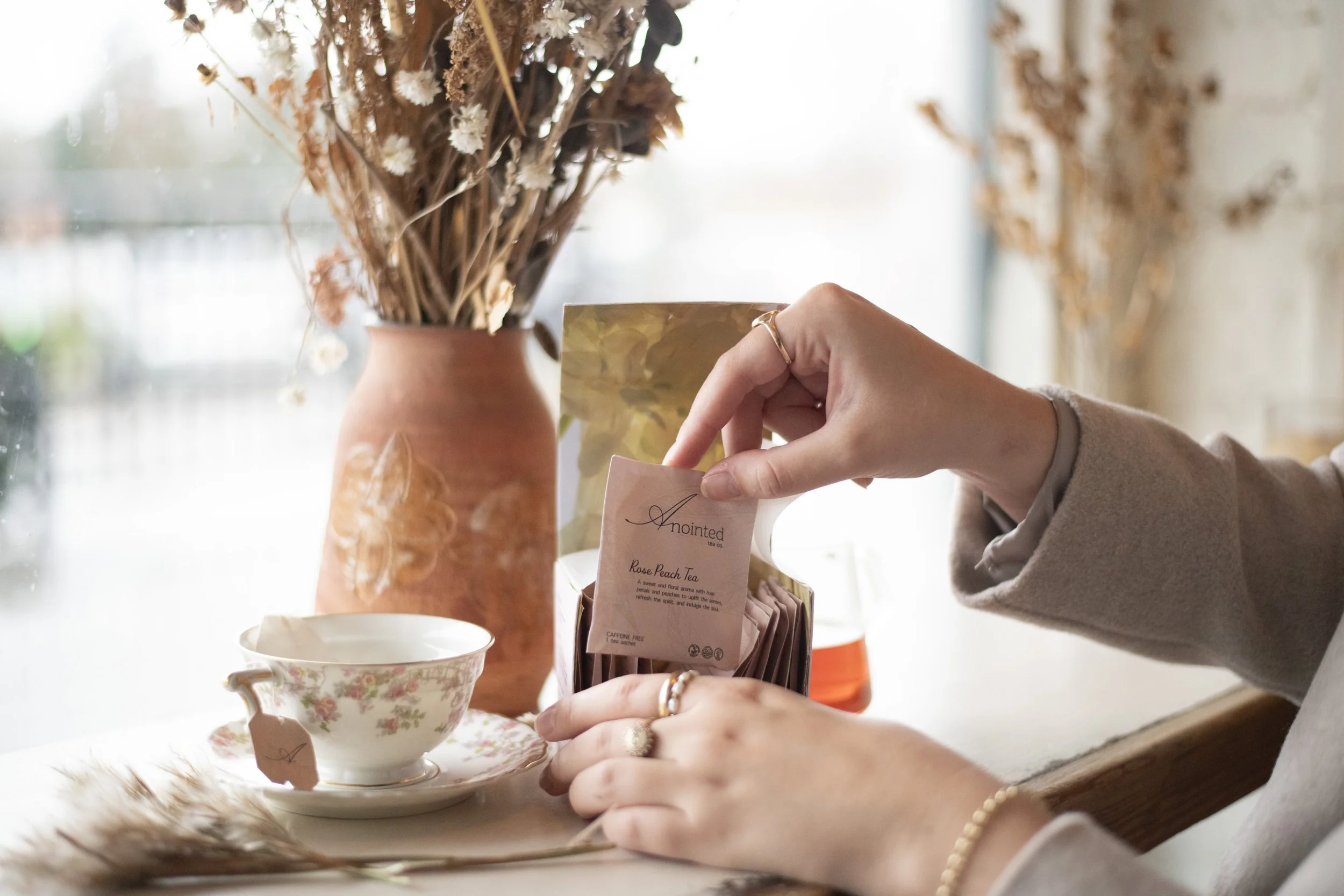Anointed Tea Company’s product suite ensures consistency through using the same box dyeline for each flavor of tea while also using a color palette where the viewer can tell that the products are meant to be seen together. Also, by singing the same photograph on each of the boxes to create some visual consistency, just with different color overlays to ensure the viewer knows the brand identity, but can also tell the difference between flavors almost immediately. The visual research conducted to inform Anointed Tea Company’s design decisions was pretty extensive. Going to several different stores and looking through the tea section to see what was not already provided. I noticed that the boxes just were not very pretty, and if they were pretty, then the information was a bit harder to find. My goal was to reimagine this effect!